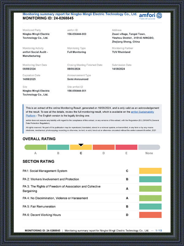 Mingli Electric implementează un mecanism de inspecție cu mai multe legături în controlul calității, nu numai verificarea dimensiunii și structurii produsului finit, ci și eșantionarea și testarea grosimii, uniformității, adeziunii și rezistenței la pulverizare a sării stratului de tratare a suprafeței pentru a se asigura că fiecare lot de produse din tablă poate menține o stare bună în timpul transportului, stocării și utilizării. Compania este echipată cu instrumente de testare de bază și va coopera, de asemenea, cu agenții de testare a terților calificați pentru a furniza rapoarte de testare și documente de conformitate pentru a ajuta clienții să finalizeze cu succes procesul de inspecție de calitate sau de certificare pe piața terminalului.